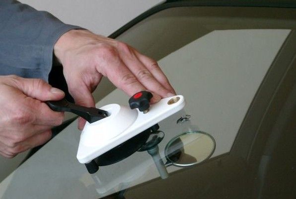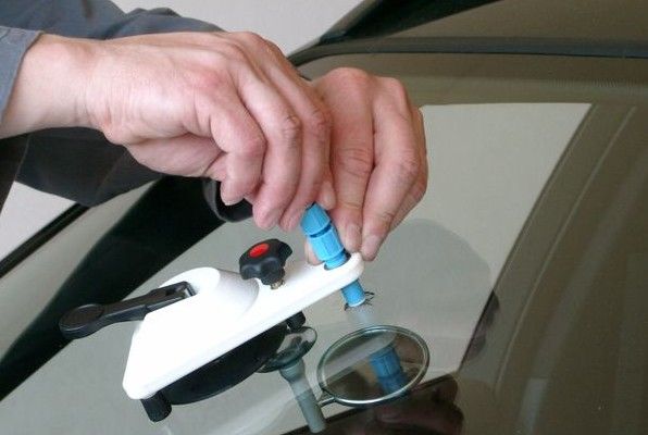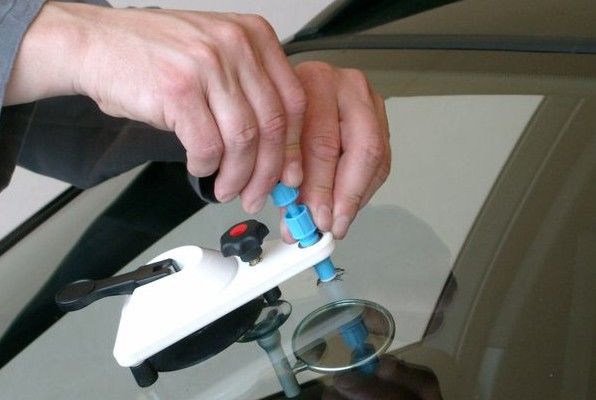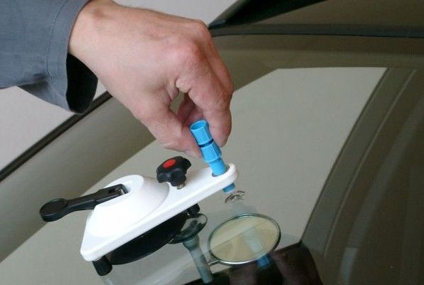 La réparation commence par le nettoyage minutieux de l'impact en enlevant la poussière et les éclats de verre; puis ajuster le porte-outils à ventouse sur le pare-brise de façon à ce que la tête de l'injecteur de résine se trouve exactement au milieu de l'impact.