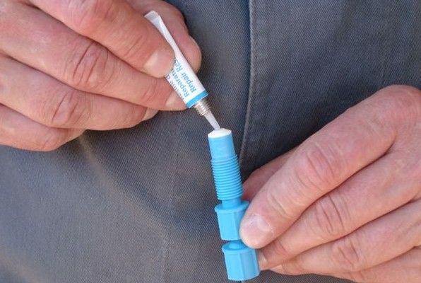 7 - Vissez le piston en maintenant le cylindre. L'impact se remplit de résine et devient clair et transparent. Attendez quelques secondes. Des bulles d'air peuvent subsister.